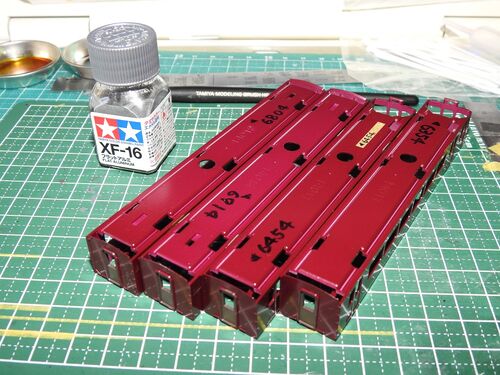 KATOの阪急電鉄6300系(6354F)”京とれいん” ディテールアップ作業〔その9〕です。 今回は、貫通扉の窓枠色入れ作業です。 貫通扉の窓枠をTAMIYAのエナメル塗料(フラットアルミ)を超極細の面相筆を使って、色入れを行いました。 今回は、以上になります。 お…