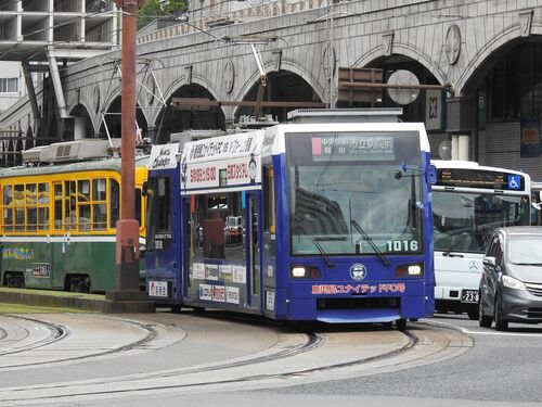 2024年5月15日 いづろ通にて 市立病院前ゆき 鹿児島市交通局が運行する、鹿児島市電1000形の1016号車(鹿児島ユナイテッドFC 応援電車)です。 ※当ブログは”鉄道コム”と”にほんブログ村”に参加しています。 良ければ、下にある小さなバナーか右側のバナーをポ…
