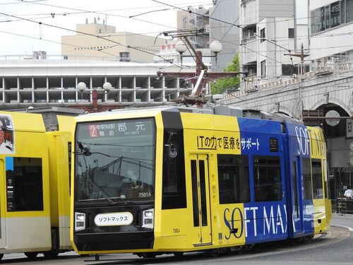 2024年6月11日 いづろ通にて 【2】郡元ゆき 鹿児島市交通局が運行する、鹿児島市電7500形の7501号車(SOFT MAXラッピング車両)です。 ※当ブログは”鉄道コム”と”にほんブログ村”に参加しています。 良ければ、下にある小さなバナーか右側のバナーをポチっとお…